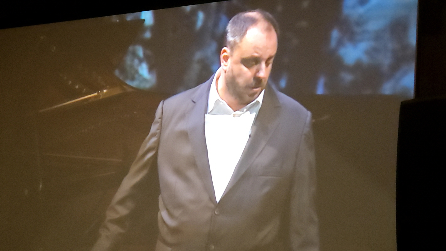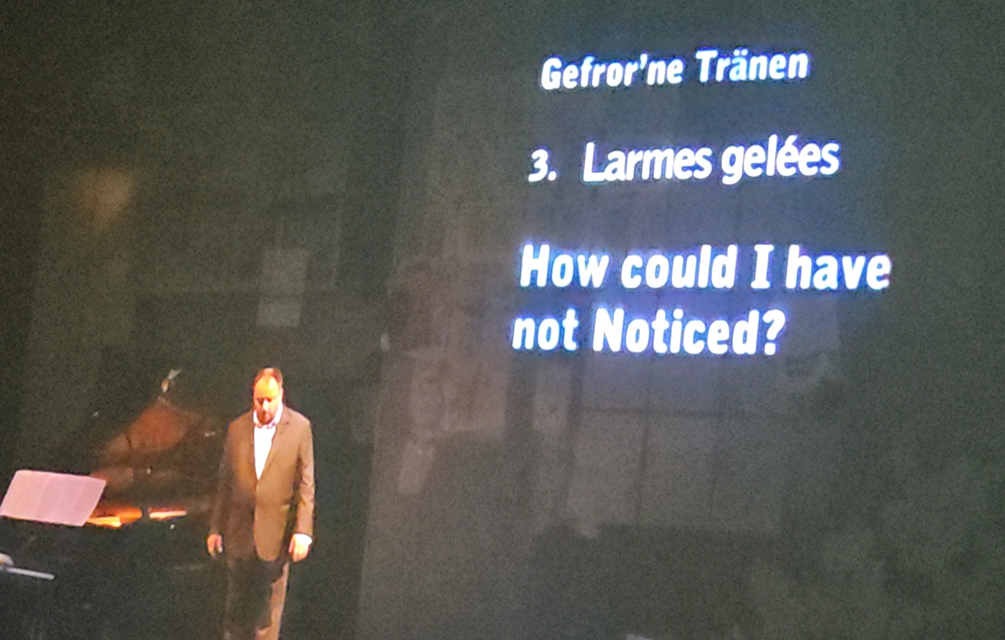 검은색 종이 같은 것이 휘날리는 배경 영상이 인상적이다. 뭔가 죽음의 기운이 느껴진다. 반주자의 구부정한 어깨와 허리가 나를 보는 듯하다.