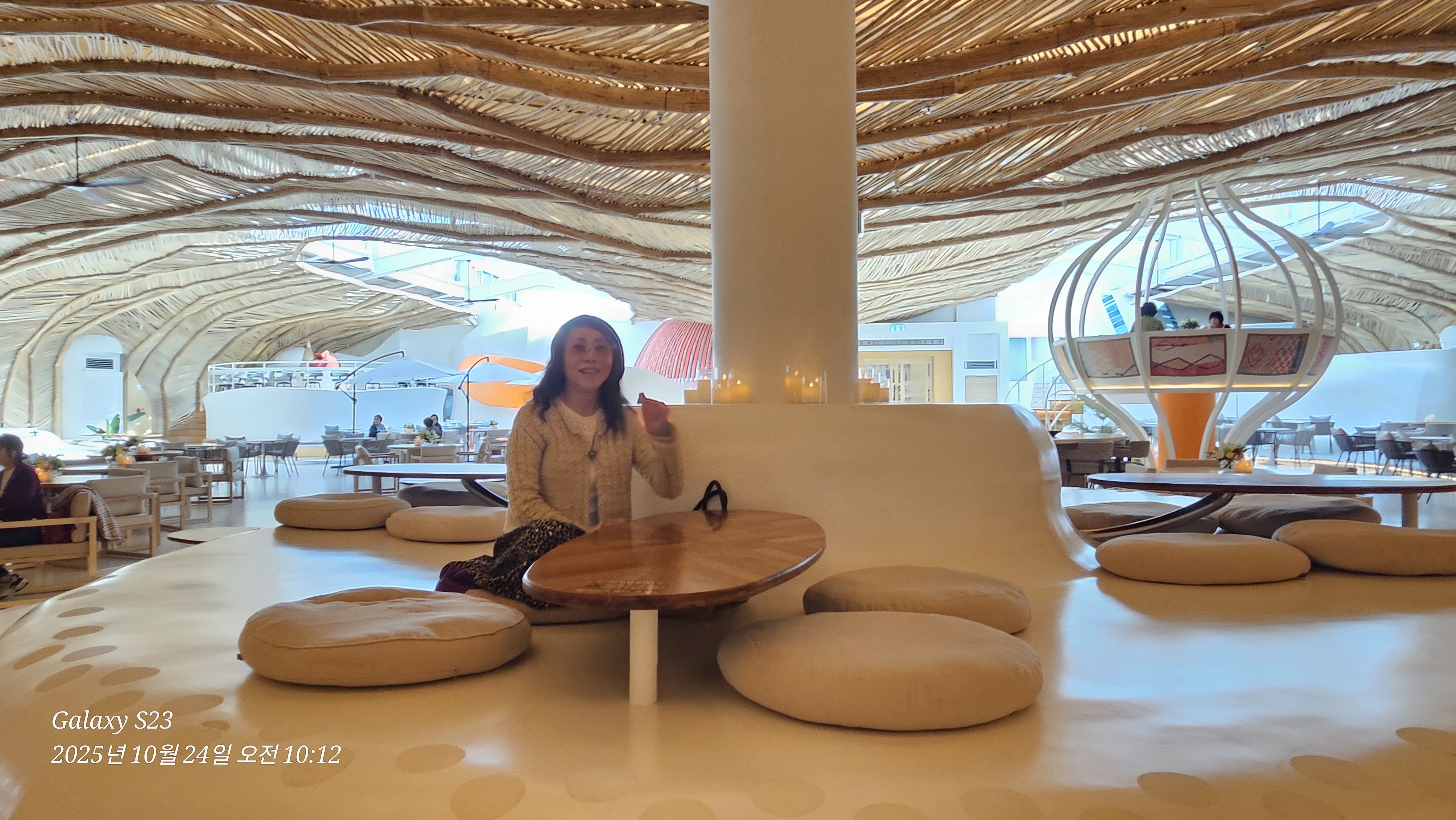 ‘열려라 깨’하고 들어간 자투라 카페의 색깔과 스페이스는 우리를 충분한 공간 속에서 환영해주었고 평소엔 앉을 자리도 없던 새 둥지 카페 좌석이 바구니 열기구에 앉아있는 것처럼 여기저기의 모습이 아름다웠습니다.
