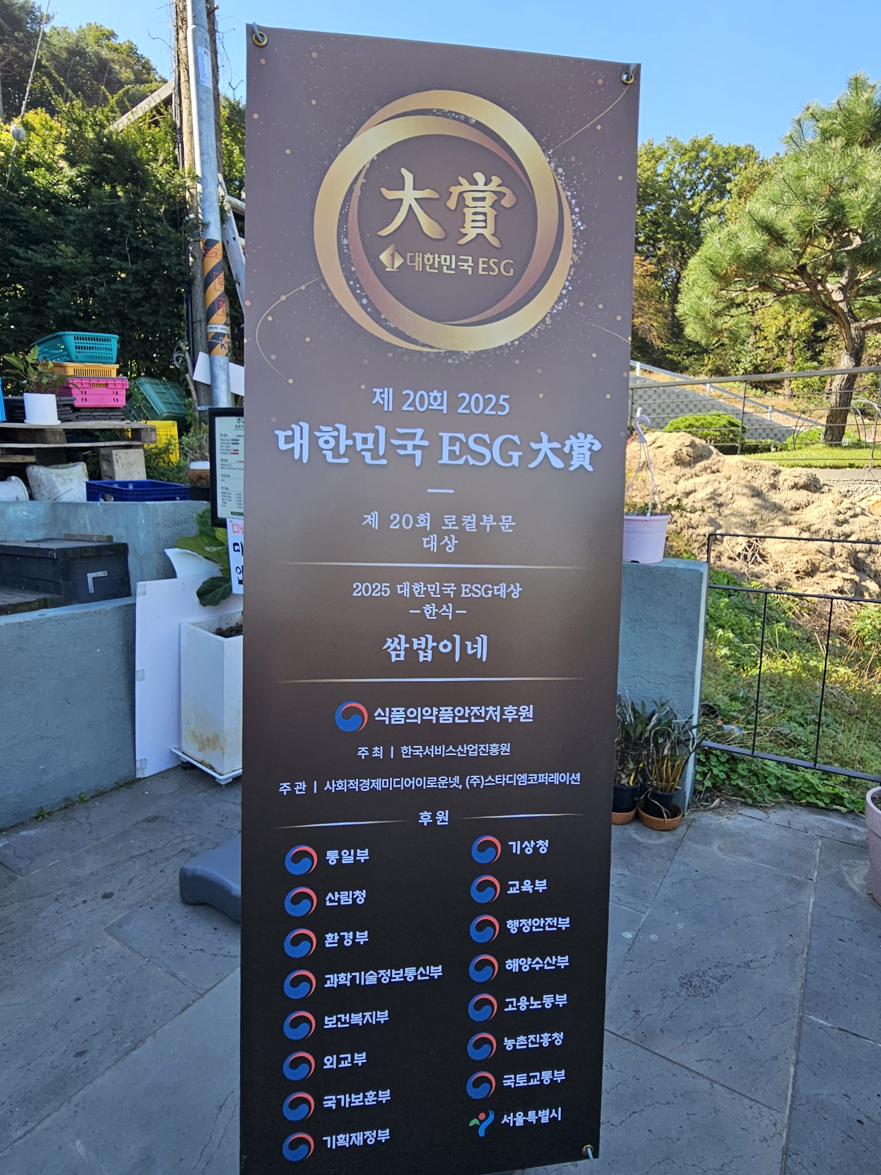 나오는 구멍은 또 다르다. 들어갔던 곳으로 나오면 안 된다. 카페를 나와 ‘쌈밥이야’ 식당으로 갔다. 반찬도 맛있고 제육볶음도 맛나다. 야채는 무한리필이다. ESG대상도 받았다고 적혀 있는데 무슨 상인지 잘 모르겠다. 밖으로 나오니 재활용품 분리대도 있는데 깔끔하게 잘 만들어놨다.