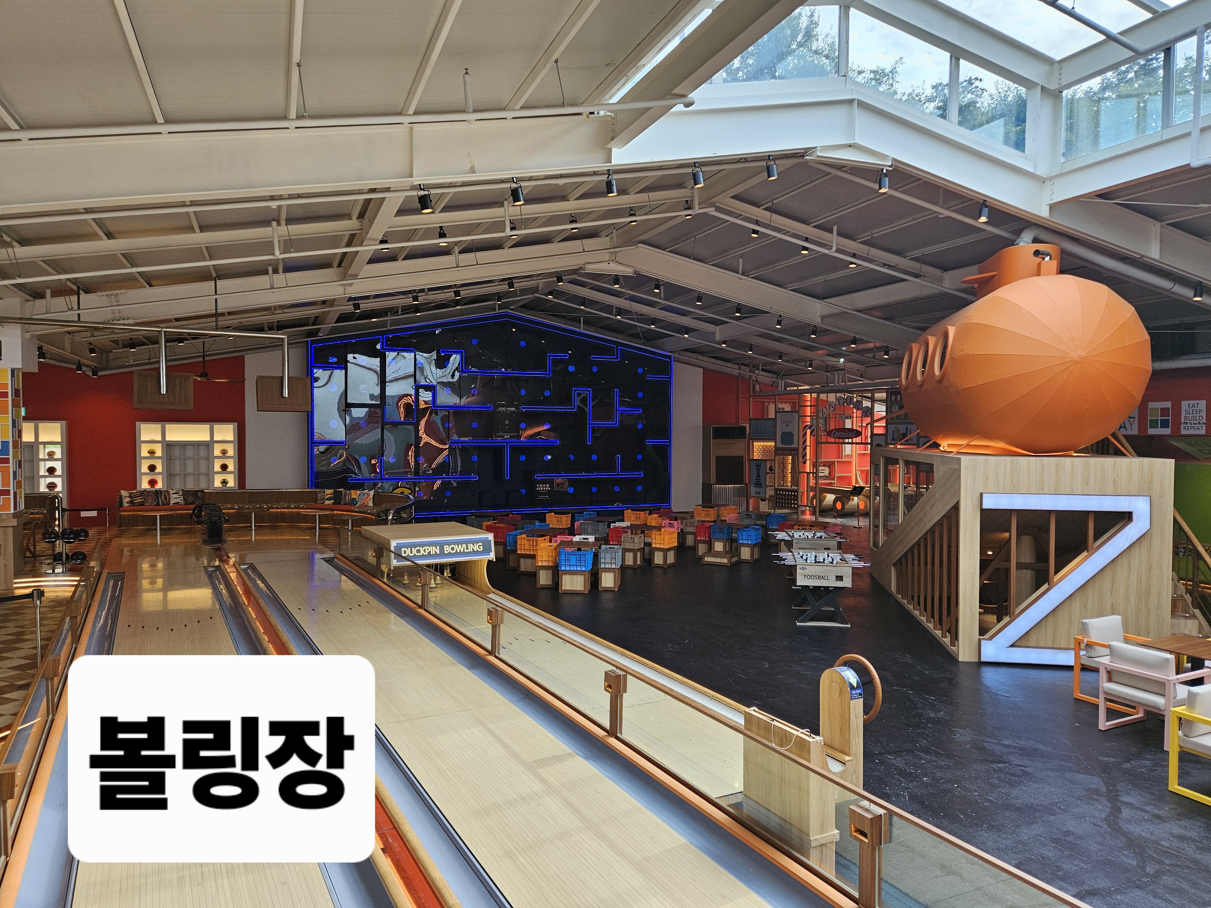 안으로 들어가니 천장도 좌석도 특이하다. 여기저기 앉아보고 그물망에 누워서 수다도 떨었다. 안쪽에는 게임방도 있는데 당구도 칠 수 있고 볼링도 할 수 있다. 화장실도 환상인데 문 여는 곳을 몰라서 밀어도 보고 당겨도 보고 하다가 벽을 보니 작은 스위치 같은 것이 붙어있다. 이걸 눌러보니 열린다. 안으로 들어가니 이건 화장실인지 호텔 방인지 구분이 안 되게 멋지다.