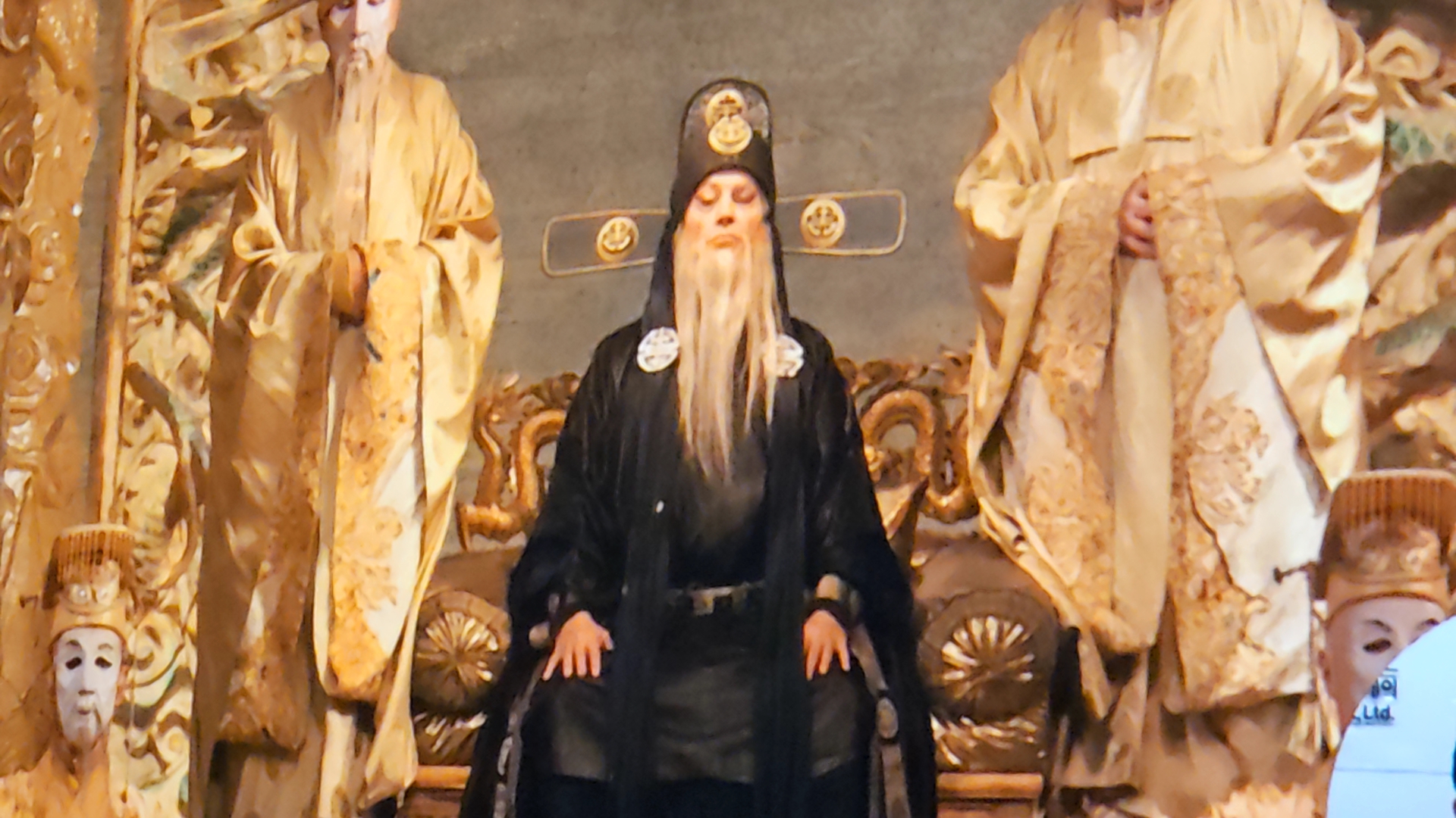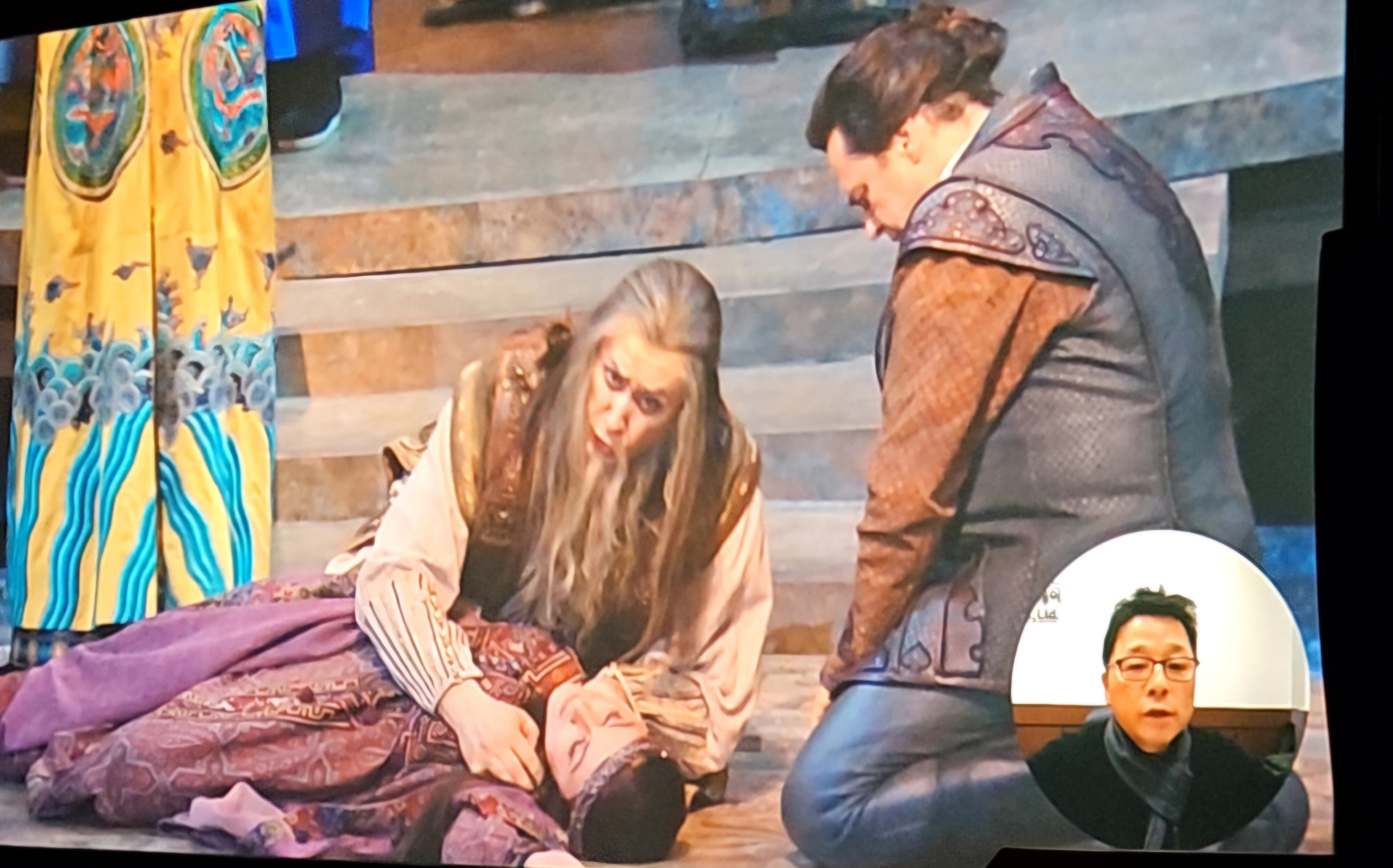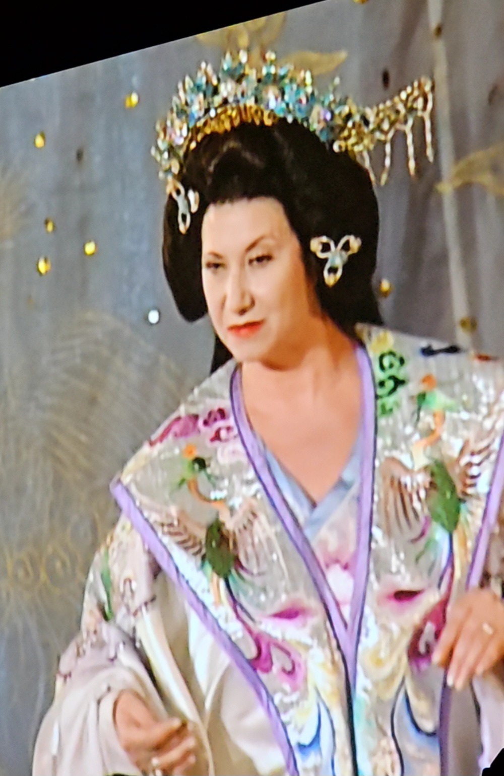 투란도트 공주가 차가운 말투로 첫 번째 문제를 말한다.