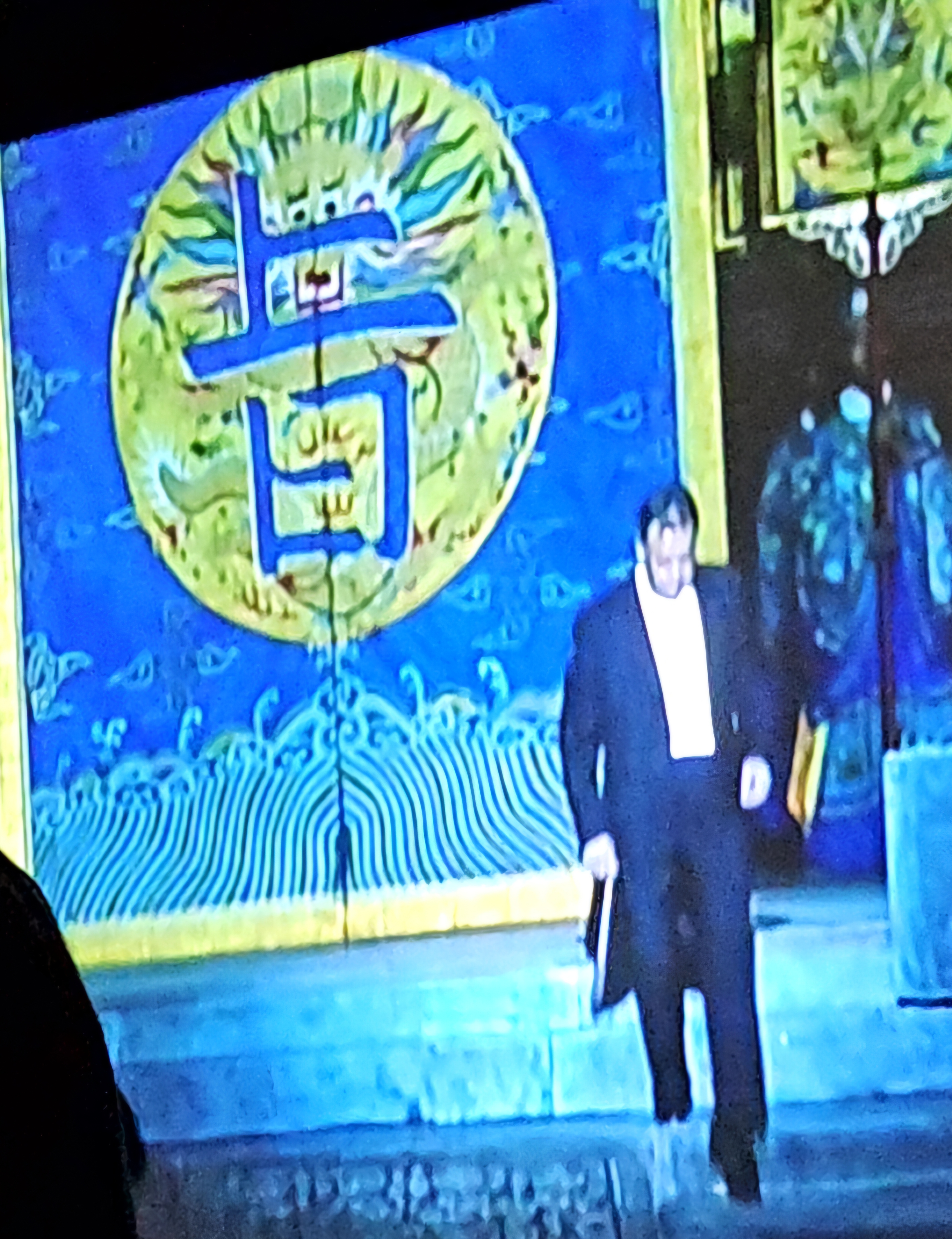 투란도트의 두번째 질문에 갑자기 황제가 칼라프를 격려하고 사람들이 칼라프를 격려한다.