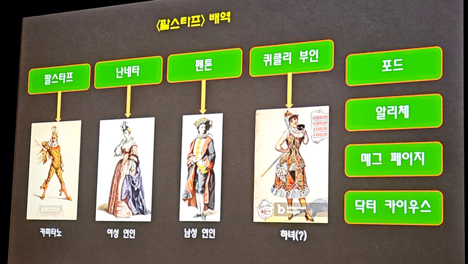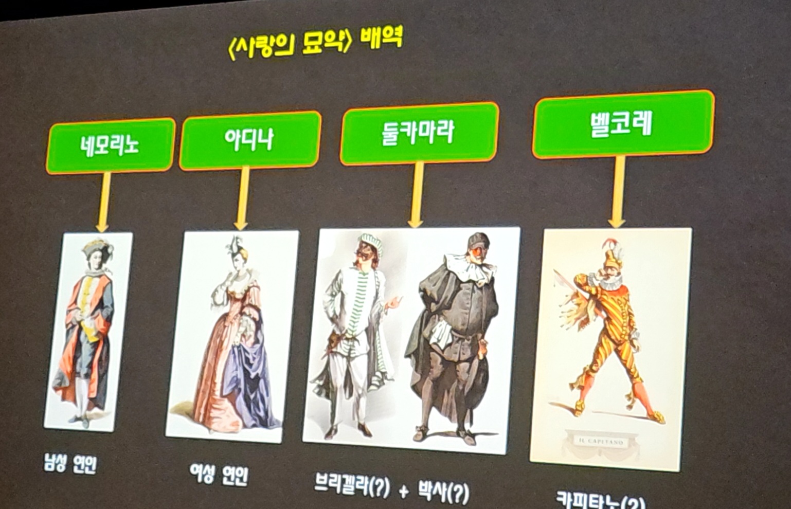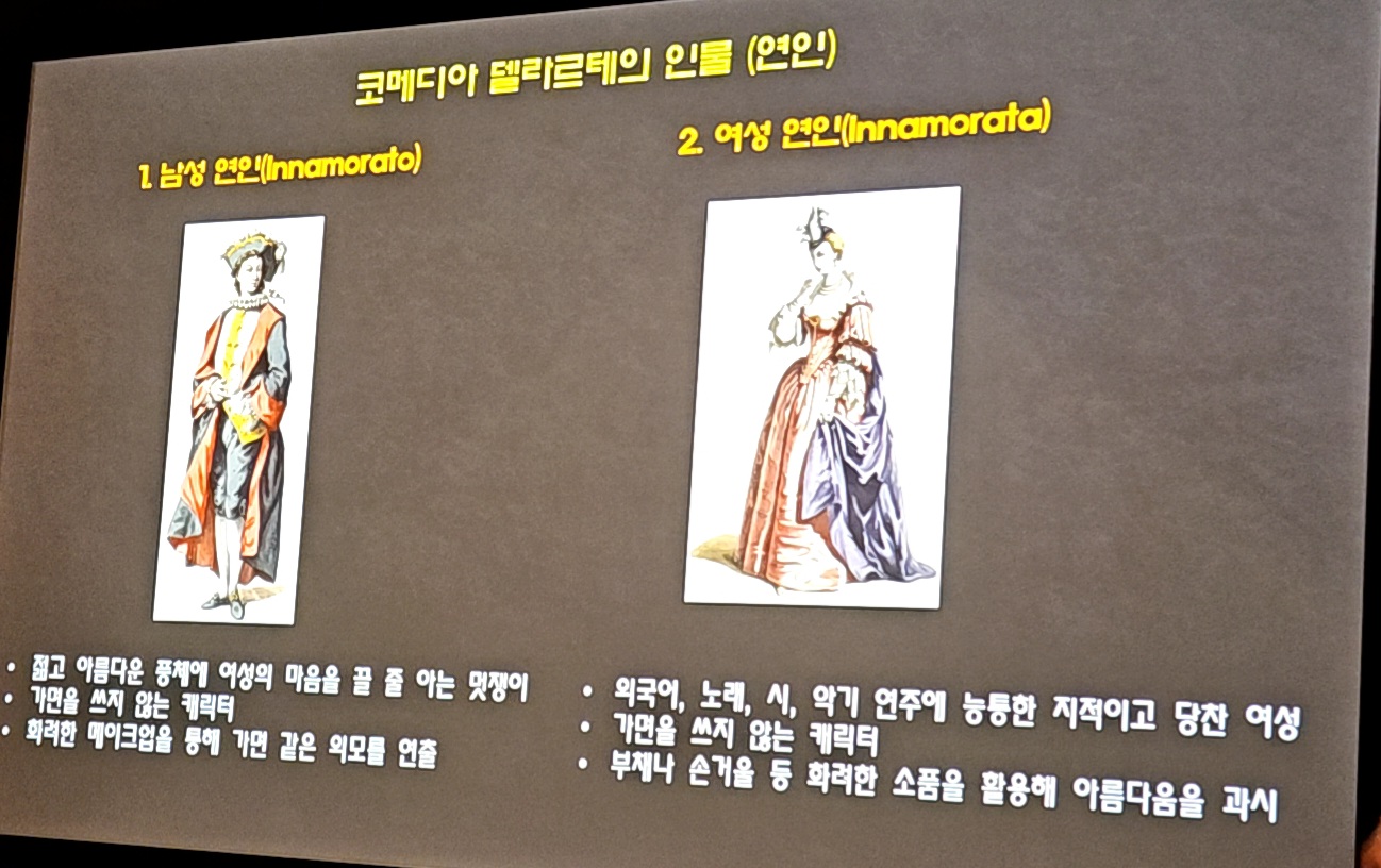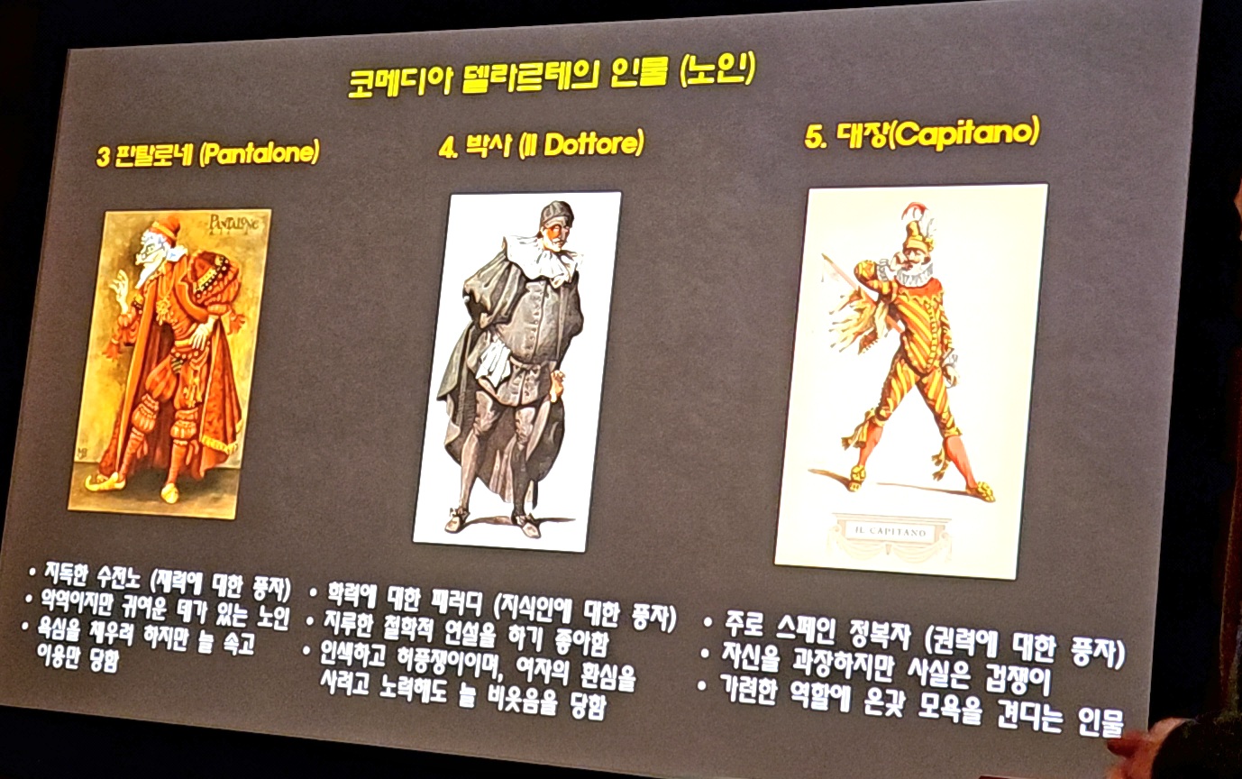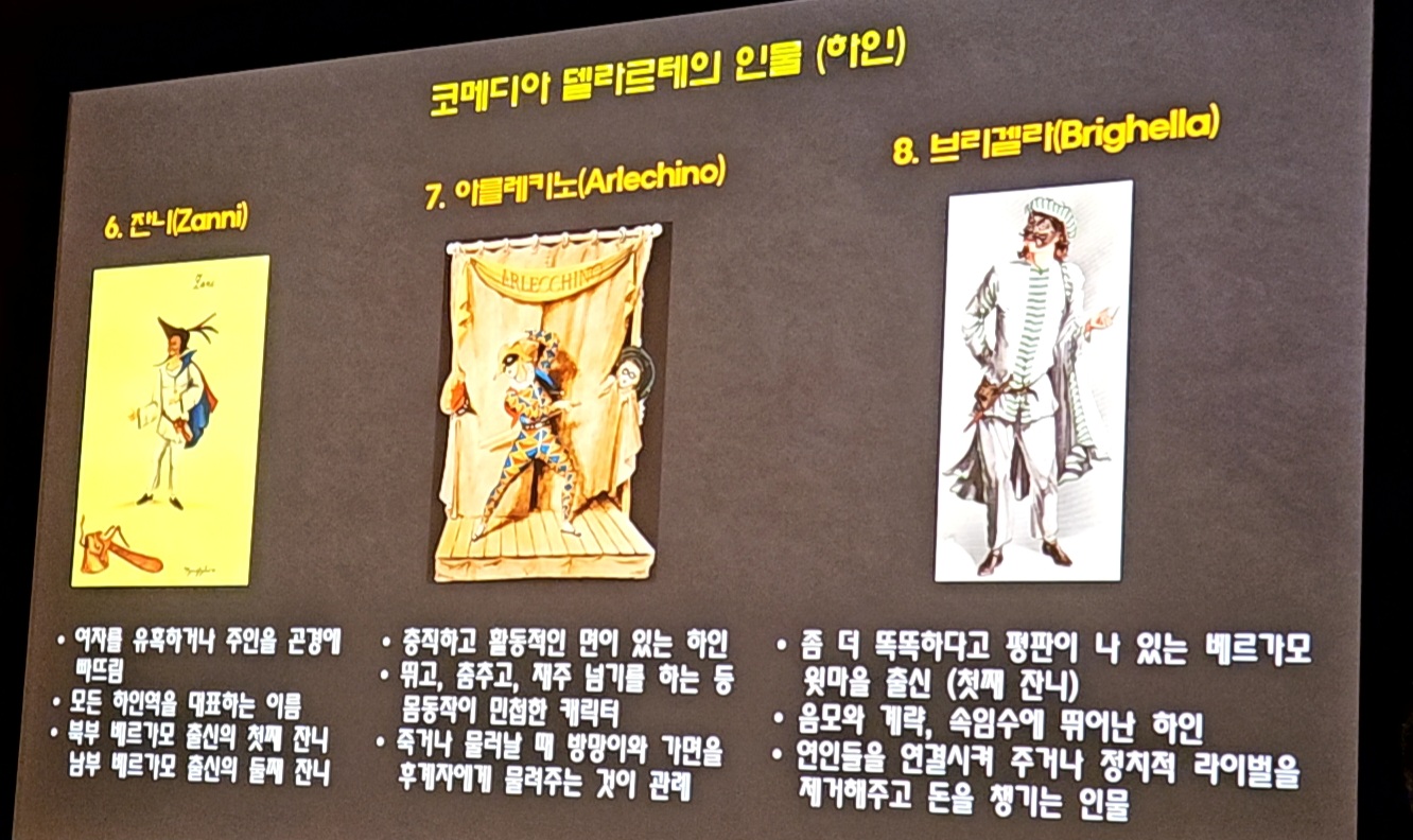 또한 코메디아 델라르테의 전형적인 캐릭터들에 대해서도 설명 드리겠습니다.