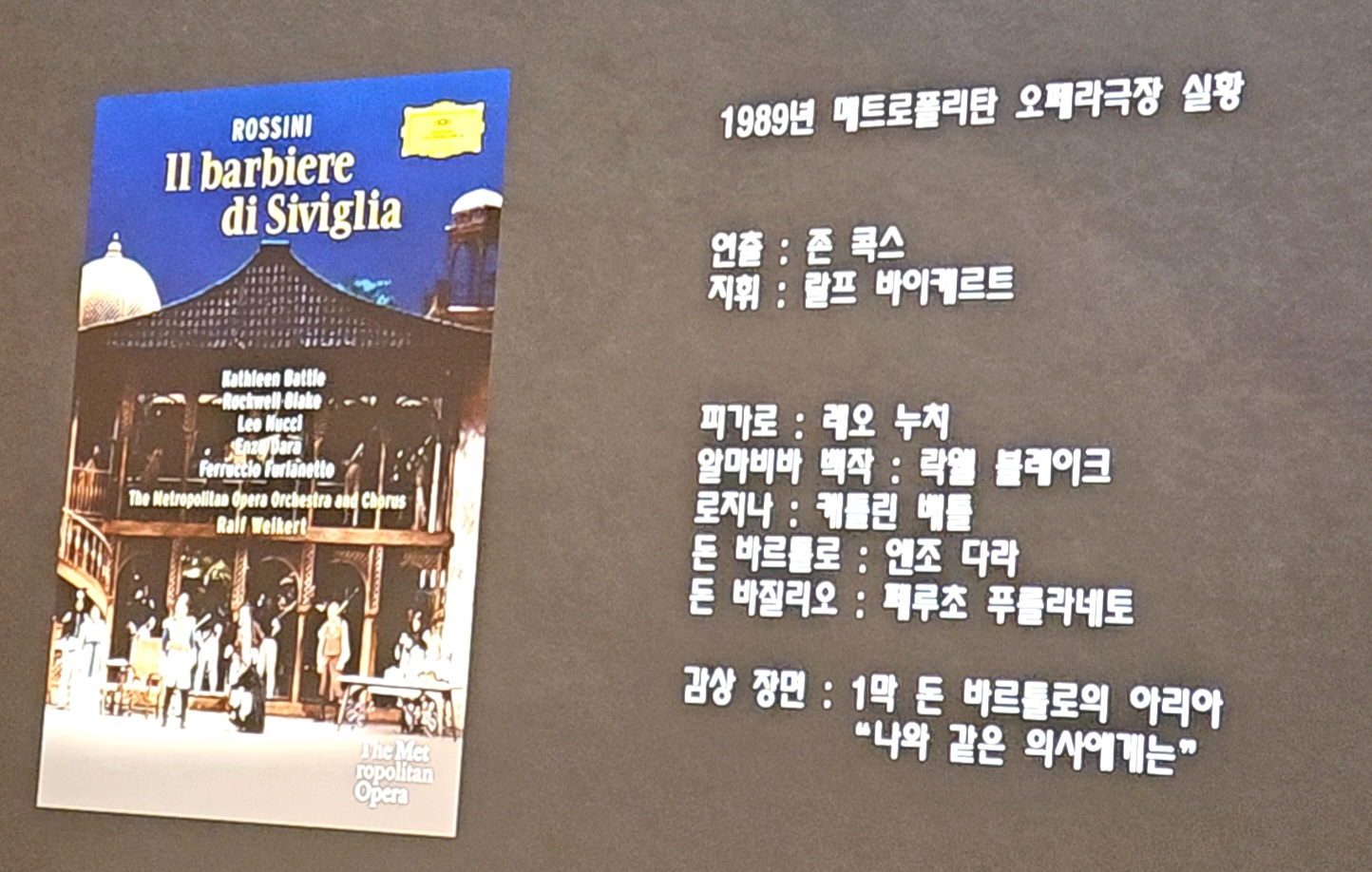 발표를 진행하면서 여러 가지 오페라 공연 영상물을 함께 보려 하는데요..
