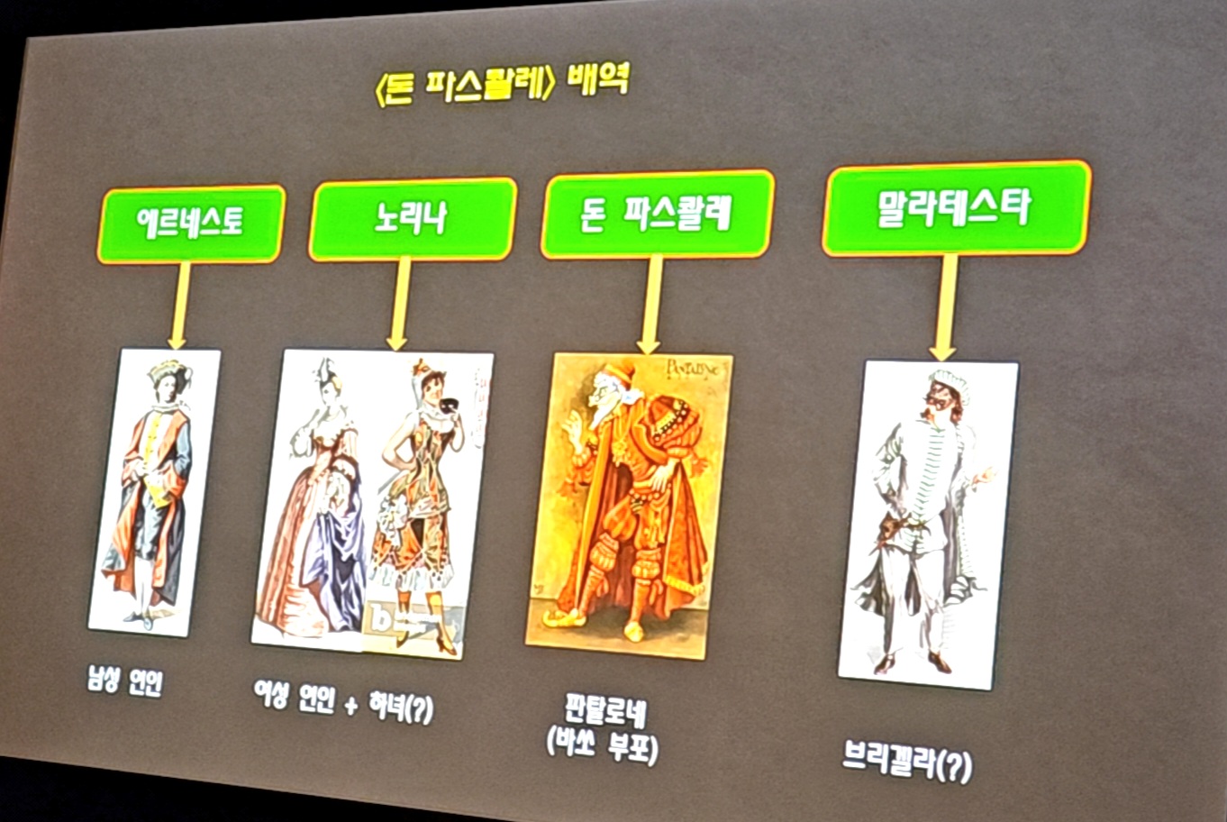발표 후반부, 우리는 본격적으로 오페라 부파의 세계로 침잠했습니다. 귀족적이고 엄숙한 '오페라 세리아'와 달리, 우리 주변의 인물들이 겪는 사랑과 질투, 소동을 다룬 이 장르는 친근하면서도 세련되었습니다.